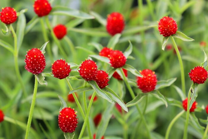 丸い苞が特徴的なセンニチコウは夏から秋に開花する一年草(一部、多年草)です。
