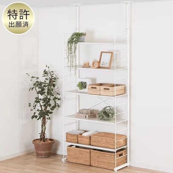 つっぱり固定で壁に穴をあけずに設置できる壁面収納です。棚板やハンガーポールといったパーツの組み合わせも自由自在なので、リビングや子ども部屋、趣味部屋など設置する場所に合わせてアレンジできます。