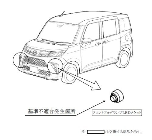 - 対応方法:全車両、フロントフォグランプのLEDソケットを良品と交換する