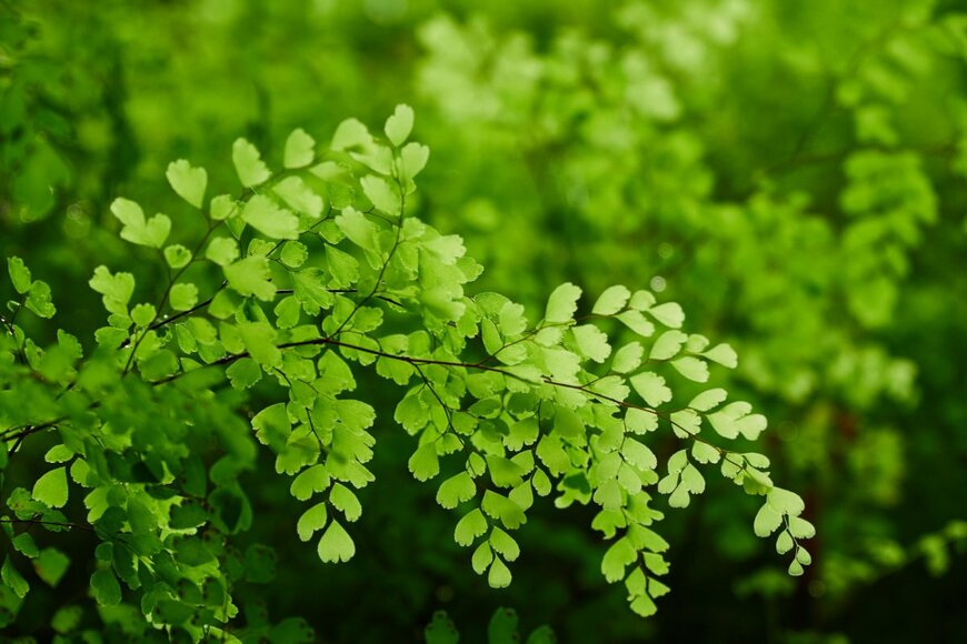 学名の「Adiantum」はギリシャ語で「濡れていない」という意味を持つ言葉が語源。小さな葉には撥水性があり、かけた水をはじく様子から名付けられました。