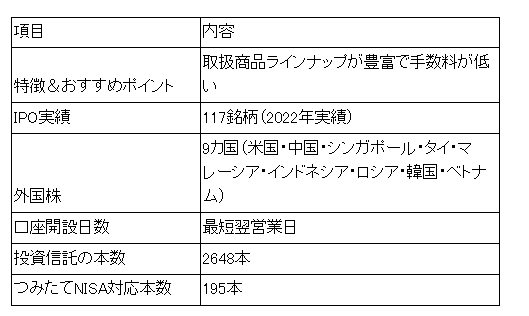 国内株は0円から取引可能であり、IPO取り扱い銘柄数も主要ネット証券の中ではダントツの実績を誇っています(主要ネット証券とはSBI・楽天・松井・マネックス・auカブコムの5社)。