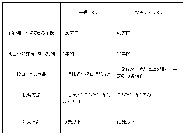 <一般NISAとつみたてNISAの比較>