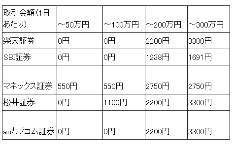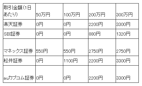 1日あたりの取引金額で決まる手数料プランで比較してみましょう。
