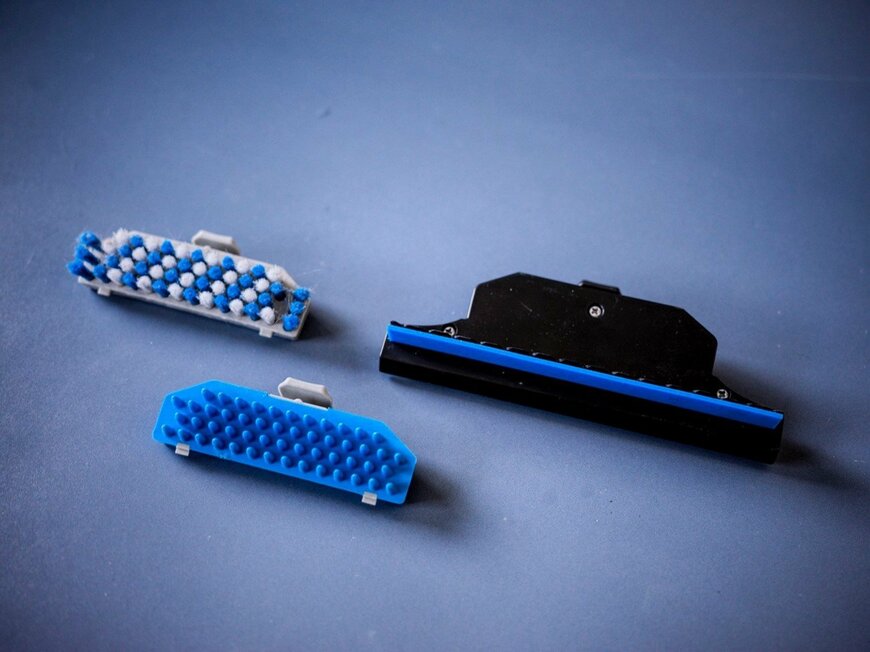 私の知る限りこんなに大型のワイパーが付属するリンサークリーナーは他社製でもないと思います。長さがヘッドよりも長くなっているので効率よく液体だけを吸い取ることができて便利。