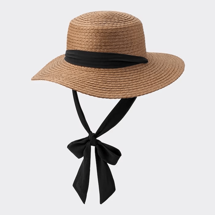 リボンがアクセントになったブレードハットも今なら税込990円。カラーはブラウンとナチュラルの2色展開。ブラックのリボンは垂らしたり、頭の上や後ろで緩く結んだりと、幅広いアレンジを楽しめます。便利なアジャスター付きで、ハットのフィット感を調節できるのもポイント。