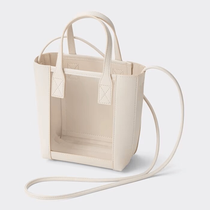 高見えなのに税込990円で買えちゃうクリアショルダーバッグ。手持ちも肩掛けも斜め掛けも、ファッションに合わせて使い分けできて便利!写真のオフホワイトのほか、ブラック、オレンジ、グリーンと夏らしいカラーバリエーションも魅力。
