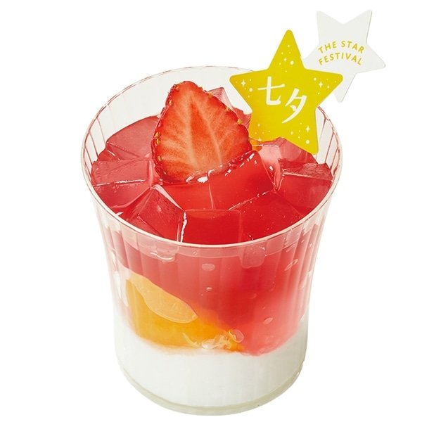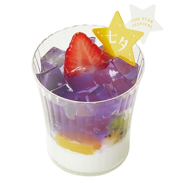 赤い衣をまとった織姫をイメージした、七夕限定のカップデザートです。ほんのり甘酸っぱい2種類の食感のハイビスカスゼリーとふんわり甘い練乳クリームの組み合わせが楽しめます。