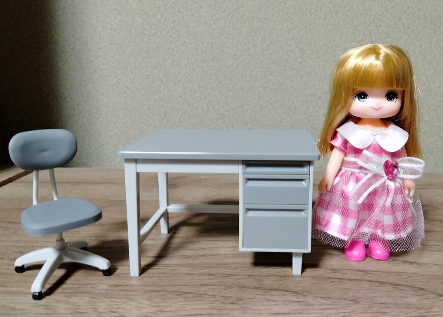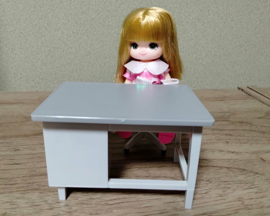 セリアの事務机は1/12サイズなので、シルバニアファミリーといった人形にもぴったりとフィットしました。