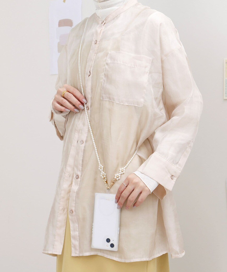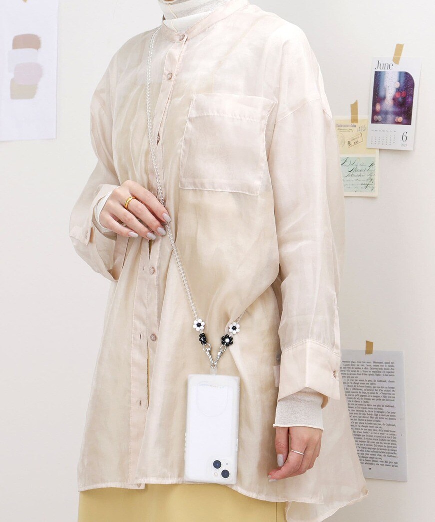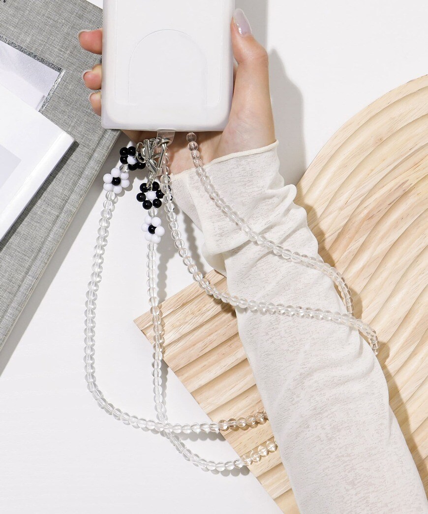お花のワンポイントがおしゃれ! シンプルコーデを華やかにしてくれそうな「スマホストラップビーズフラワー」