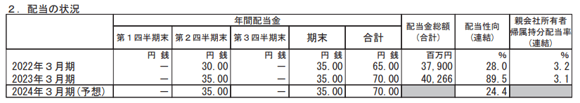 ニデックの株式を1年前に買い、持ち続けたとすると、「2023年3月期の中間配当と2023年3月期の期末配当」の計2回を受け取ることができます。