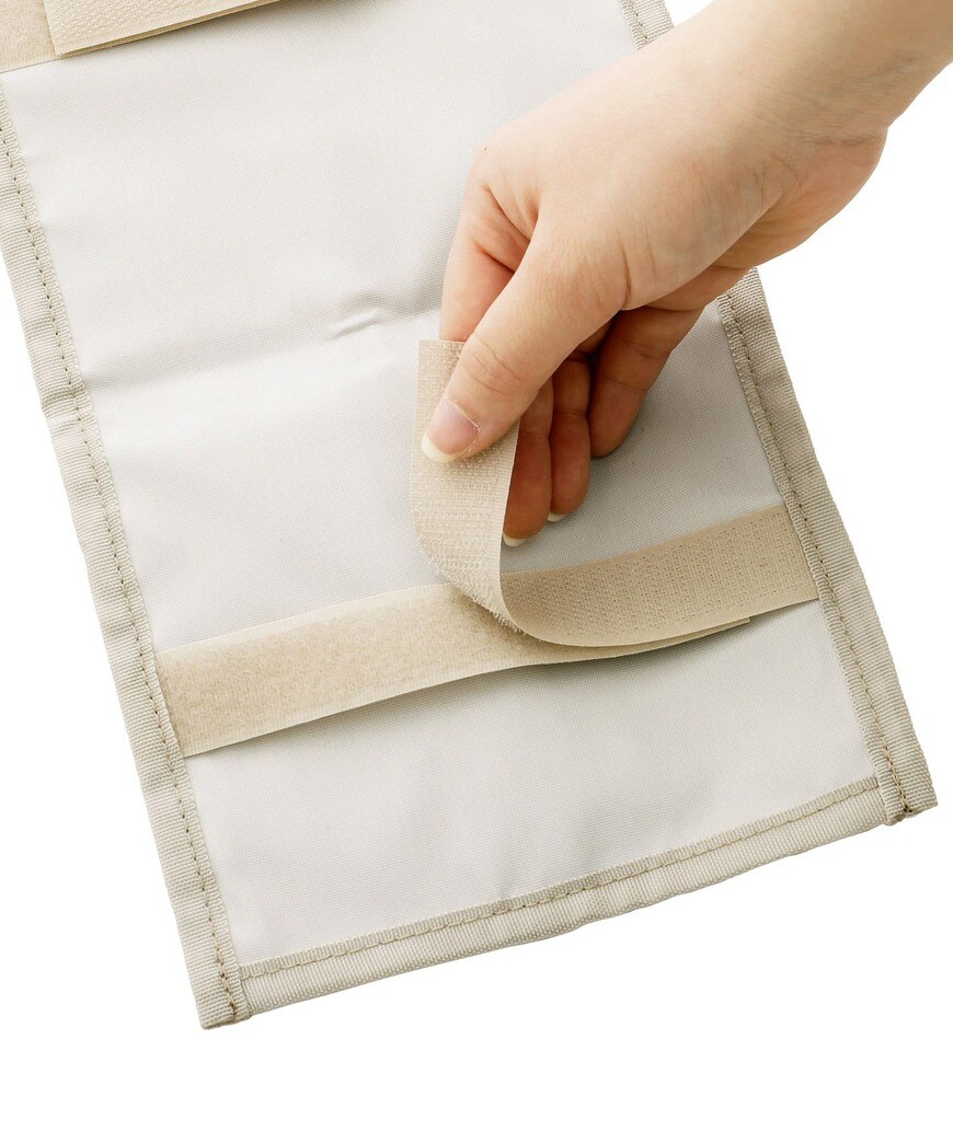 車内のサンバイザー部分に差し入れて使うタイプの収納アイテムです。細かなカードポケットやバンドがついているので、駐車券、ケーブル、サングラスなどをおしゃれに収納できます。