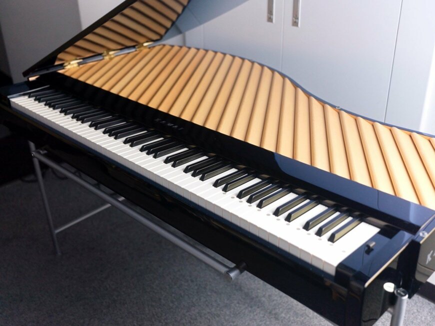 ピアノは通常88鍵盤ですが、この全てを鳴らすことはできません。櫛の音域に制約があるためです。発音できる鍵盤には印があり、この中で演奏することになります。