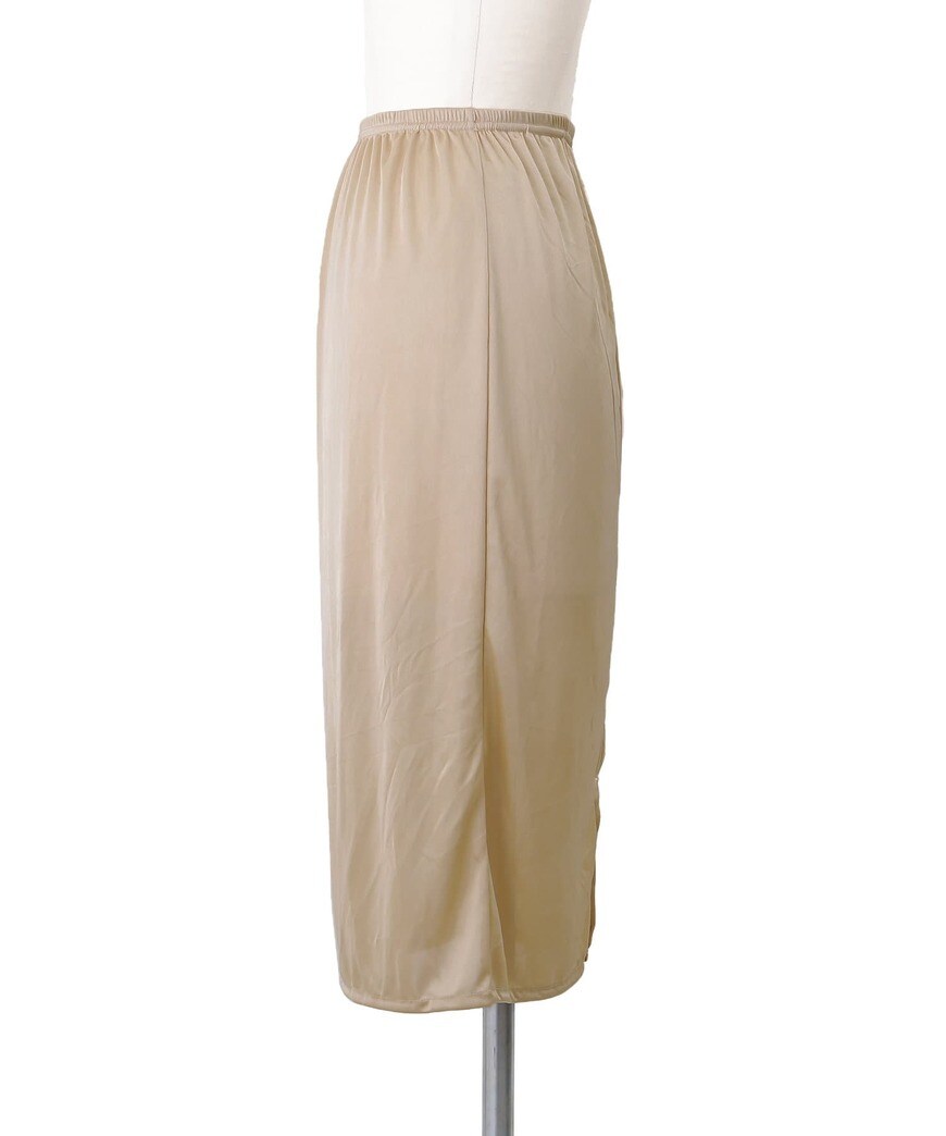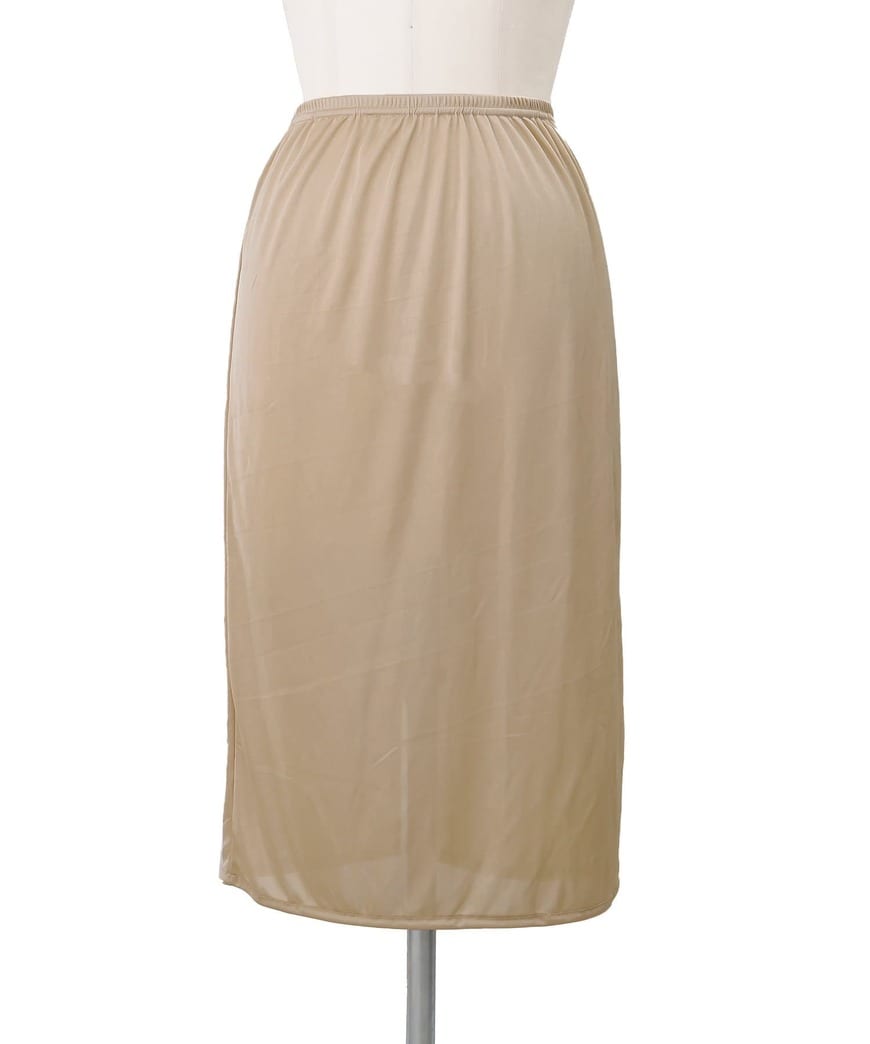 ロングのスカートやワンピースの下に着やすい、65cm丈のペチコートです。下着が透けなのはもちろん、滑りのある肌触りのいい生地が、肌への張りつきやまとわりつきを防いでくれます。色味が薄いので、白い服でも透けないのもいいですよね。汗をかきやすい時期にうれしい、吸水速乾機能つきなのも高ポイントです。
