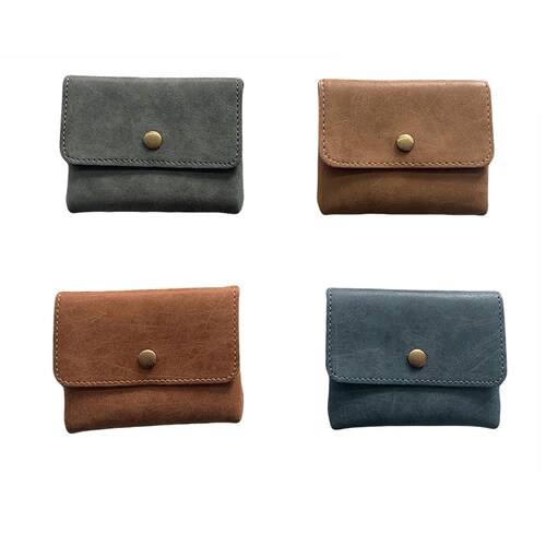 ゴールドのボタンがワンポイントになった、レザー調の小銭入れです。110円のクオリティとは思えないほど、本格的で高級感のただようデザインとなっています。