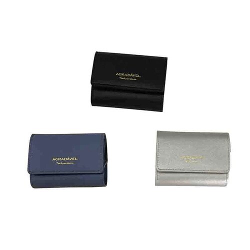 黒、シルバー、ブルーのシックな色合いが、大人っぽい印象を与えてくれる三つ折り財布です。