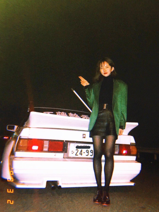 そこに収められていたのは、白い自動車と一緒に写る女性の姿。写真の加工もそうですが、ファッションや自動車のリアウインドウに貼られた「工藤静香」ステッカーなど、昭和感たっぷりです。
