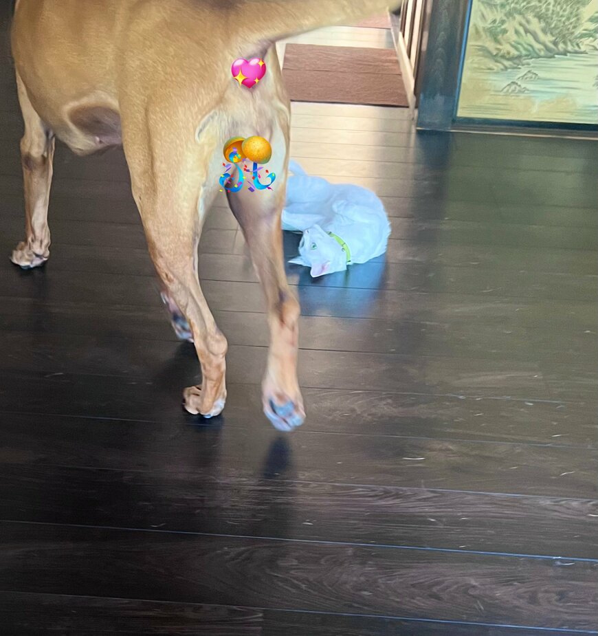 散歩から帰ったワンちゃんを熱く迎える猫ちゃん。2匹の個性が溢れるほほえましい一コマがTwitterで注目を集めています。