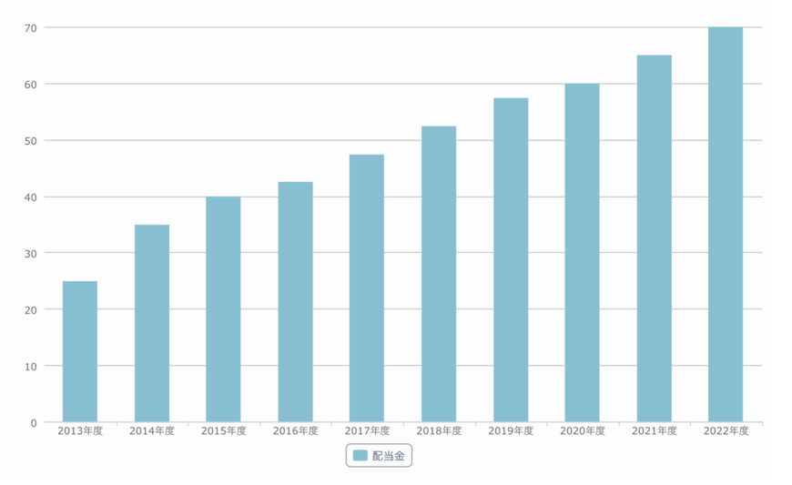 ニデックは2013年度以降増配を継続していて、2021年度は65円の配当となりました。
