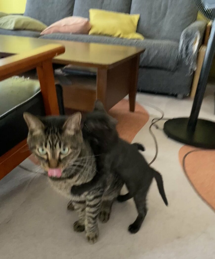 おててを伸ばして、ギュッと先住猫さんに抱きつく子猫ちゃん。2匹のほほえましいシンクロ姿がTwitterで注目を集めています。