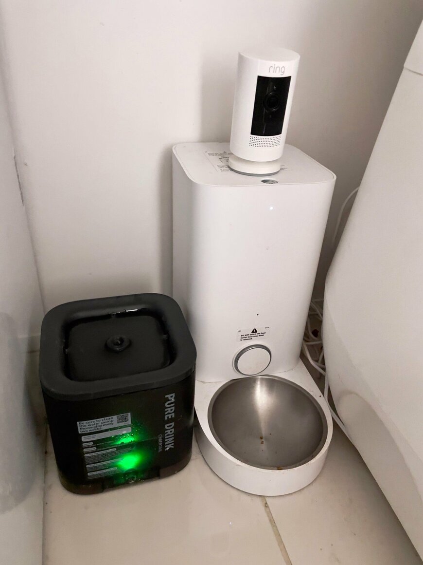 私がこれだ!と思ったおすすめシチュエーションは、室内やちょっと見守りたい時にいろんな場所に置く使い方。例えば3Dプリンタを使う時に進捗管理で横に置くとか、猫が最近少食になったかな?と思ったらフィーダーの上に置くといった感じです。