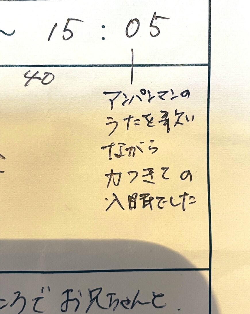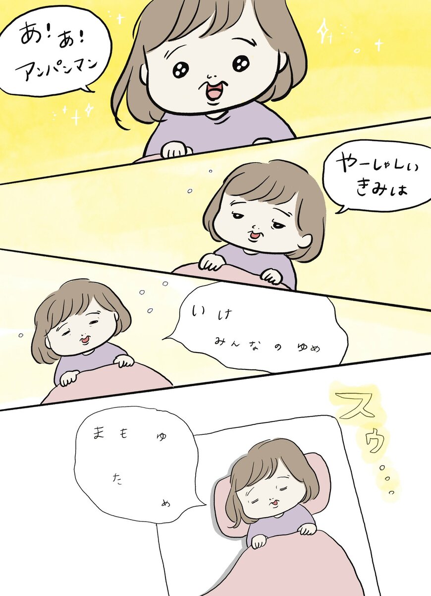 「アンパンマンのうたを歌いながら力つきての入眠でした」