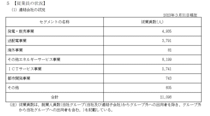 九州電力(提出会社)の2023年3月31日現在での従業員数、平均年齢、平均勤続年数および平均年間給与は以下の通りです。