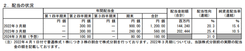商船三井の株式を1年前に買い、持ち続けたとすると、「2023年3月期の中間配当と2023年3月期期末配当」の計2回を受け取ることができます。