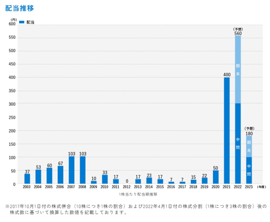 最後に商船三井の配当金の推移を確認しましょう。