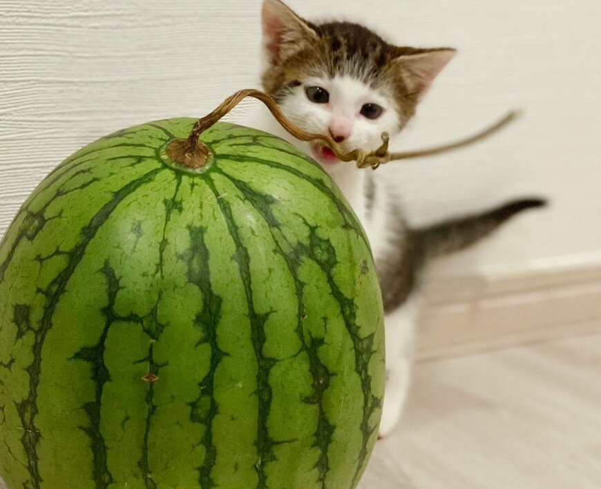 SNSで反響を呼んでいる、初めてスイカを見た猫ちゃんの可愛いワンシーンをご紹介しました。