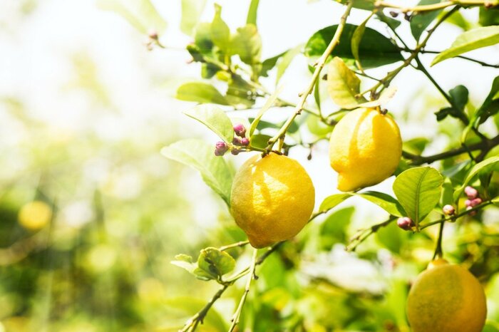 お菓子やジュース、お酒や料理の風味付けなど、幅広いレシピで楽しめるレモン。年間を通して葉が落ちにくい常緑性果樹で、春~秋はオリエンタルな香りを放つ白い花が、秋~春には果実の収穫が楽しめます。