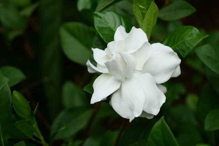 クチナシは、ジンチョウゲやキンモクセイと並ぶ日本三大香木のひとつ。梅雨時期から初夏にかけて開花する常緑樹で、花からは濃厚な甘い香りが楽しめます。