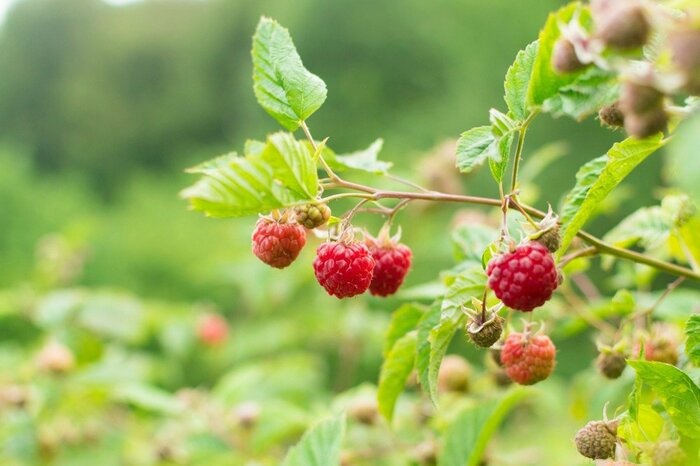 ベリー類のなかでも比較的育てやすいバラ科の落葉樹・ラズベリー。自家結実ができるため、1株だけでも実がなるのが魅力です。