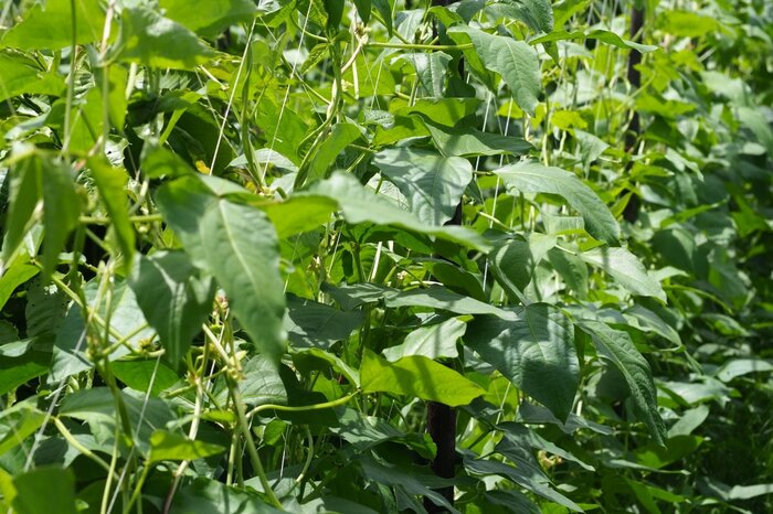 ツルありとツルなしの2種類に分かれるインゲン。グリーンカーテンにはツルありインゲンを使用します。マメがふっくら膨らむ丸ザヤ種のほか、平坦で薄い平ザヤ種も。