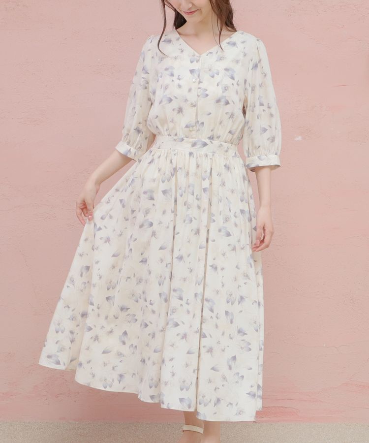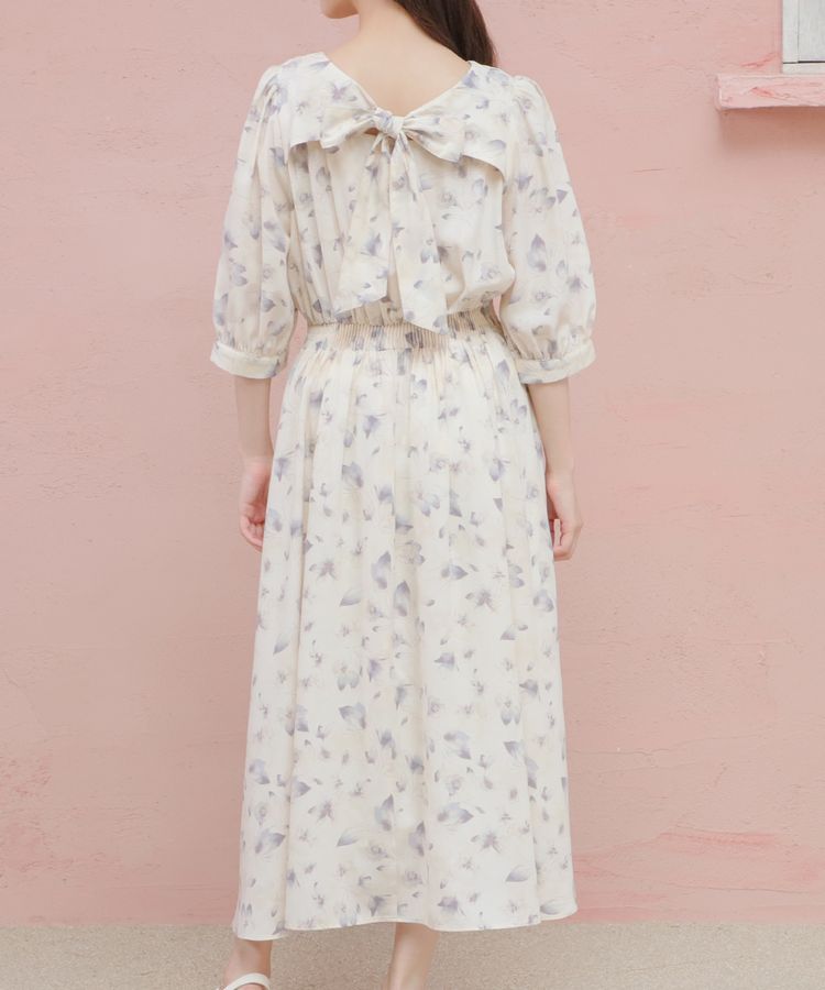 花柄が上品! 後ろ姿もきちんとかわいい「6分袖後リボンワンピース」