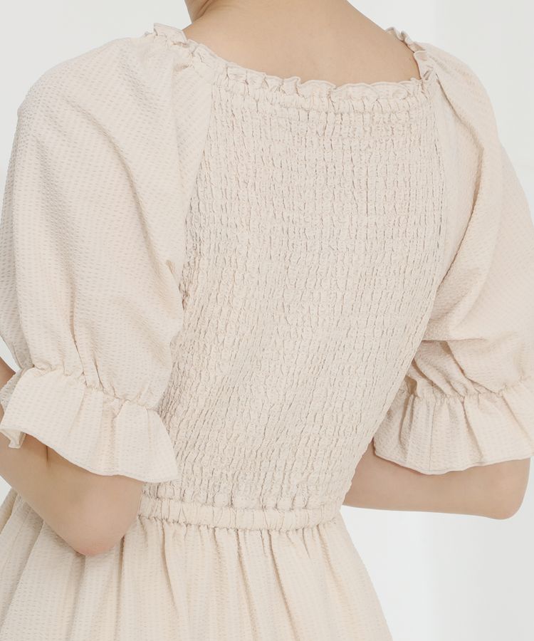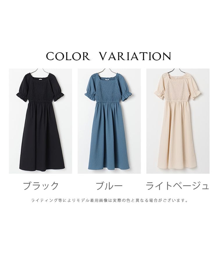 スクエアネックがデコルテをきれいに見せてくれる「シャーリングワンピース」