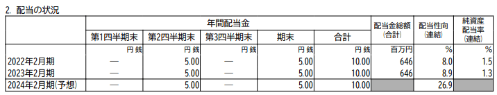 吉野家の株式を1年前に買い、持ち続けたとすると、「2023年2月期の中間配当と2023年2月期の期末配当」の計2回を受け取ることができます。