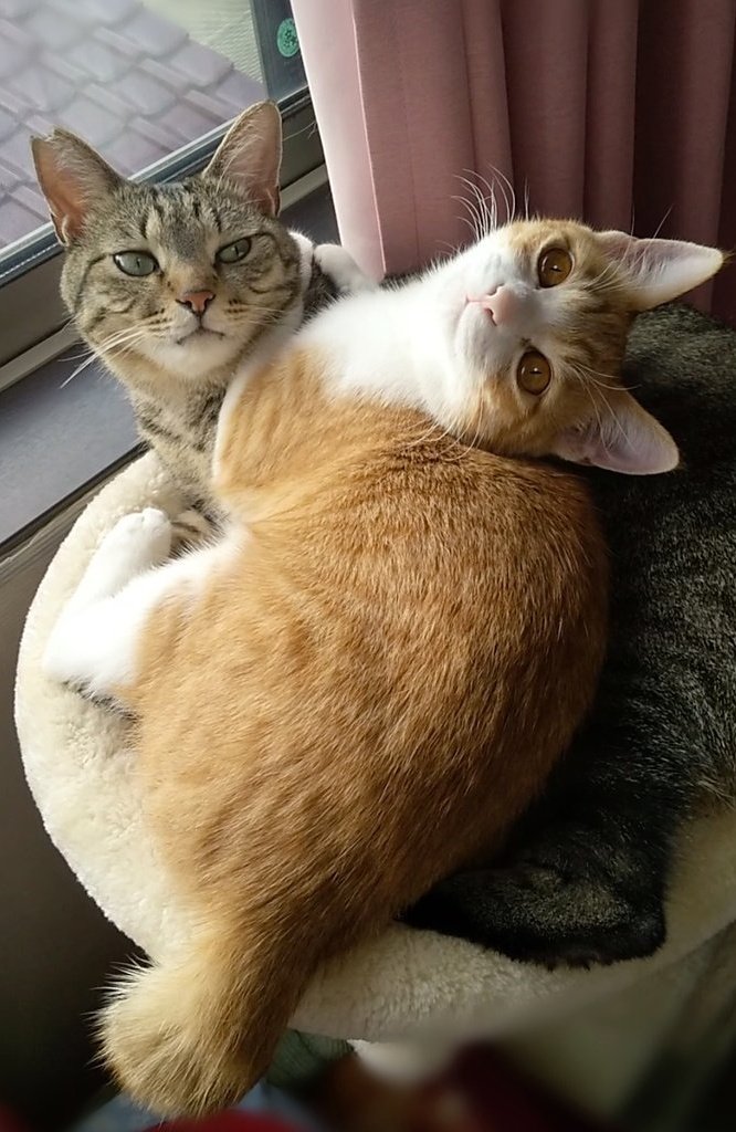 「くっつき猫」というコメントとともに投稿されたのは1枚の写真でした。