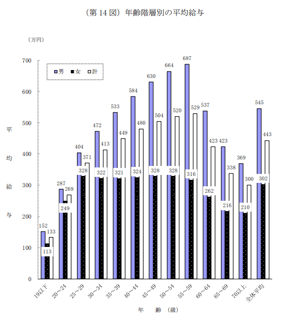 また、60歳代に限定したことではないですが、男性と女性の平均年収の差は大きくなっています。