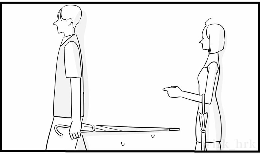 「傘の持ち方」というコメントとともに投稿されたのは、1ページに渡る漫画でした。