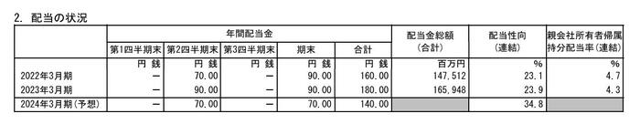日本製鉄の株式を1年前に買い、持ち続けたとすると、「2023年3月期の中間配当」と「2023年3月期の期末配当」の計2回を受け取ることができます。