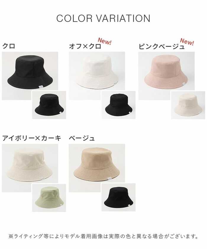 異なる雰囲気を楽しめるリバーシブルタイプのバケハです。素材違いや色違いで二通りの雰囲気が楽しめます。控えめなピスネームがさりげないアクセントに。