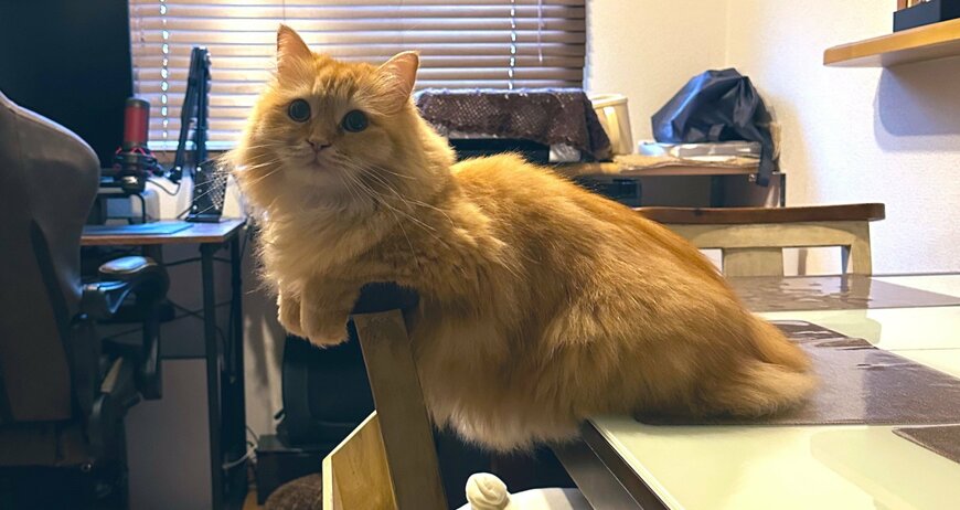 注目を浴びているのは猫の「エマ」ちゃん。投稿された写真には、テーブルとイスを使ってリラックスするエマちゃんの姿がおさめられていますが……?