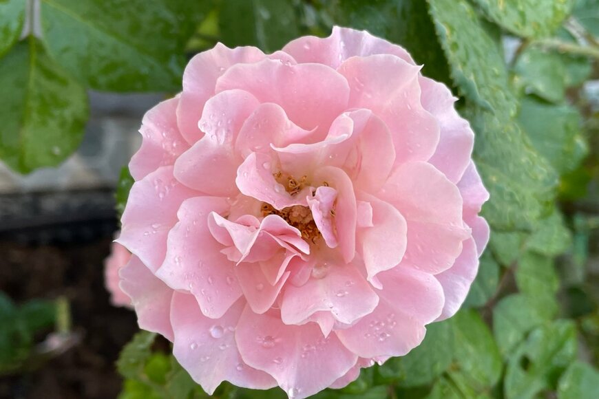 ダフネは日本生まれのバラで、ウェーブのかかった花弁がロマンチックな印象。愛らしいピンクの花からは、スパイシーなティー系の淡い香りが漂います。