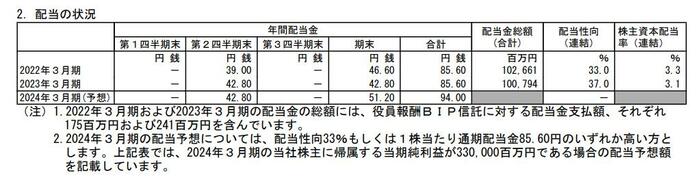 - 2023年3月期・期末配当:42.8円