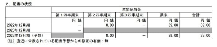 - 2022年12月期・期末配当:39円