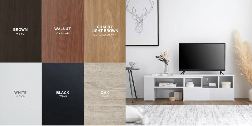 カラーはブラウン、ウォルナット、シャビーライトブラウン、ホワイト、ブラック、オークの6種類。豊富に揃えるので、妥協せずに部屋の雰囲気にマッチするものが見つかりそうです。