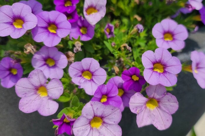 小さめの花と葉のバランスがよい多年草のカリブラコア。アンティークカラーが大変オシャレですが、定番カラーのホワイトやパープルカラーも素敵です。