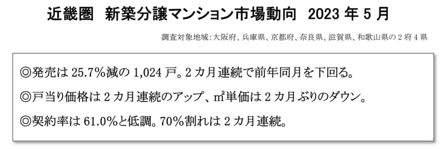 - 株式会社不動産経済研究所 近畿圏 新築分譲マンション市場動向2023年5月