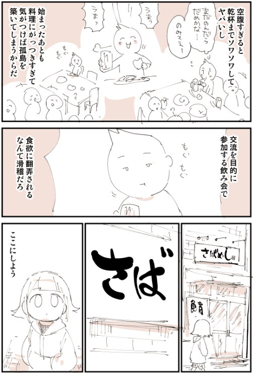 「飲み会前のルーティン」というコメントとともに投稿されたのは、4ページに渡る漫画でした。