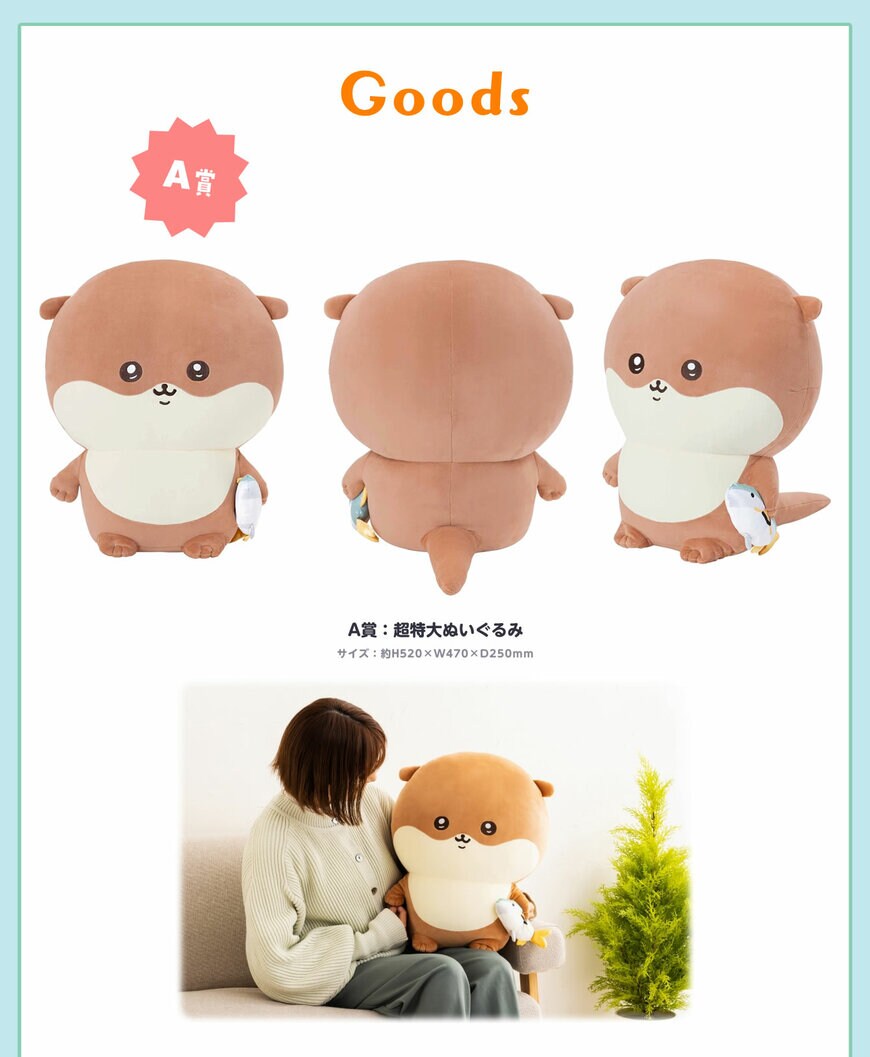 「ナガノのカワウソぬいぐるみくじ」は1回1000円で、A賞(超特大)、B賞(Lサイズ)、C賞(Sサイズ)、D賞(マスコット)が用意されています。A賞は高さ50cm以上とまさに超特大。Twitterでは全サイズをコンプリートした画像や超特大が出るまでくじを引いて大量の小さなかわうそぬいぐるみに囲まれてしまっている画像などが投稿されています。
